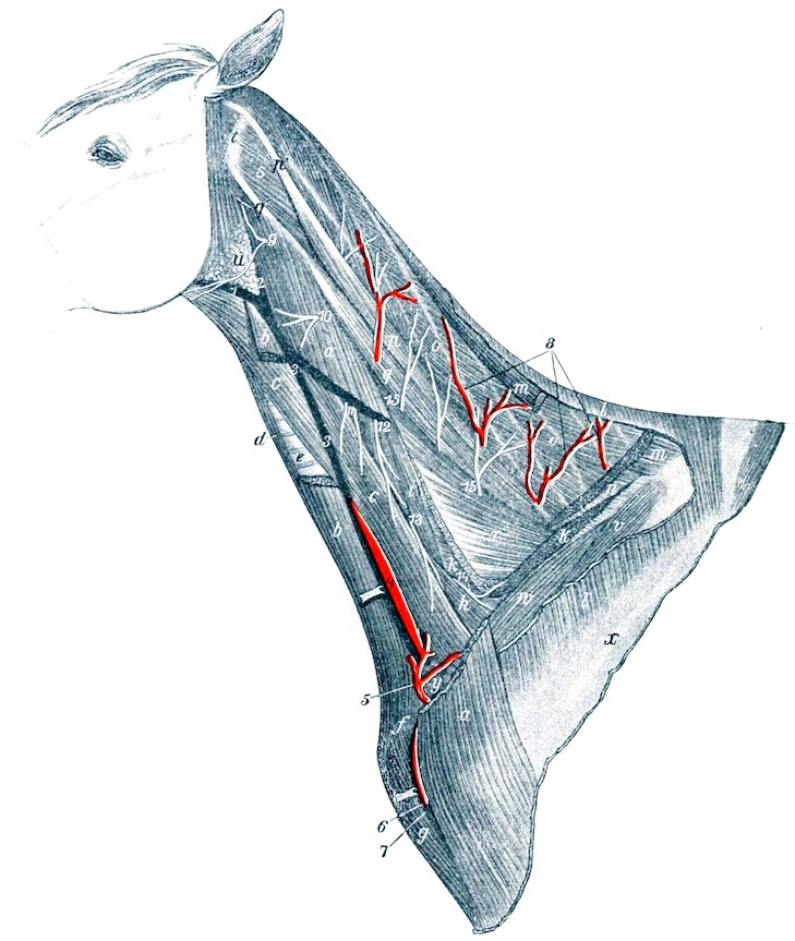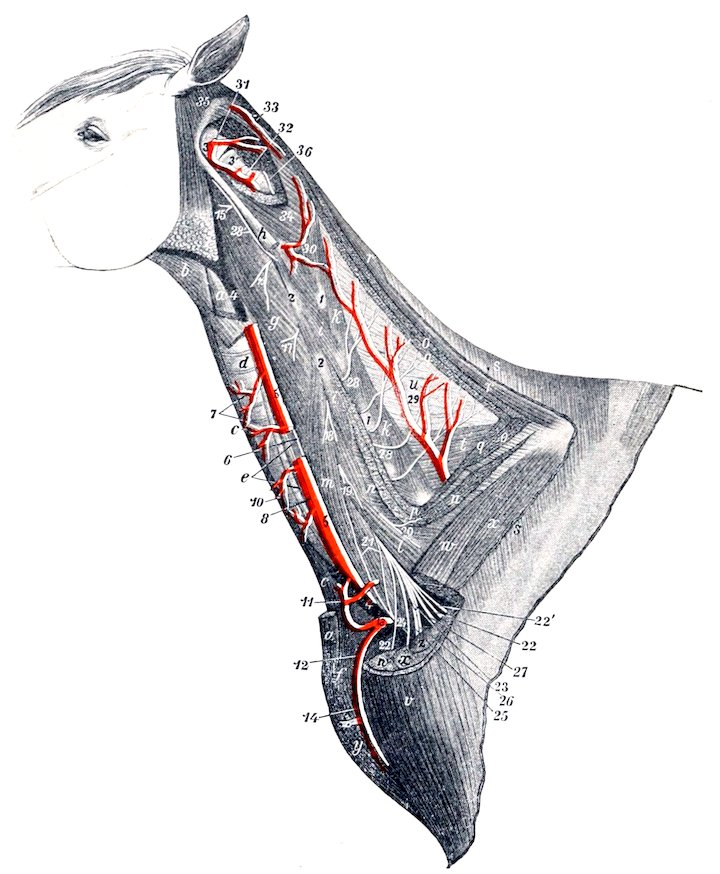 170. M’Fadyean records a case in which the vein lay on the deep face of the omo-hyoideus with the carotid artery.