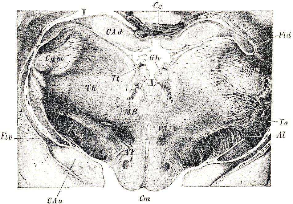 193. On a strictly embryological basis the optic part of the hypothalamus, comprising the anterior part of the third ventricle and the structures associated with it, belong to the telencephalon, but will be considered here as a matter of convenience.