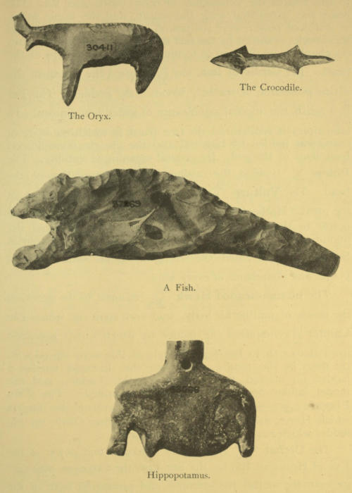 [19] See the flint hippopotami, crocodile, cow’s head, fish, etc., in Table-case M (Third Egyptian Room).