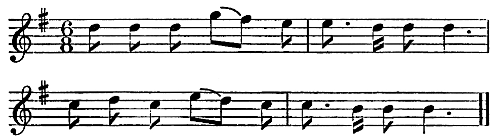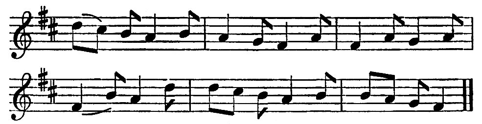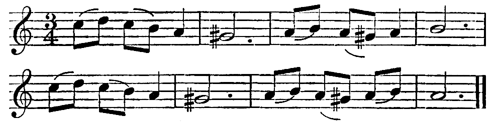 [Pg 47] which is common among the Croats, especially those of Haydn’s district.[25] Again, the Trio of the A major Symphony (No. 11 in Haydn’s Catalogue) contains a Slavonic melody—