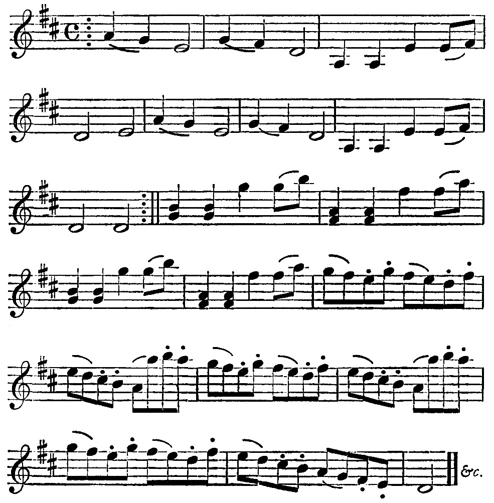 Here, again, is a similar dance-tune from Servia, which opens the Symphony in D major (Haydn’s Catalogue, No. 4):—