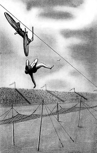 In his shimmering white suit the youth was soon flashing across on the high wire, and as he comes down on the other side, amid the applause of the crowd, we will take leave of the circus and of Joe Strong.