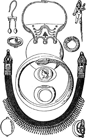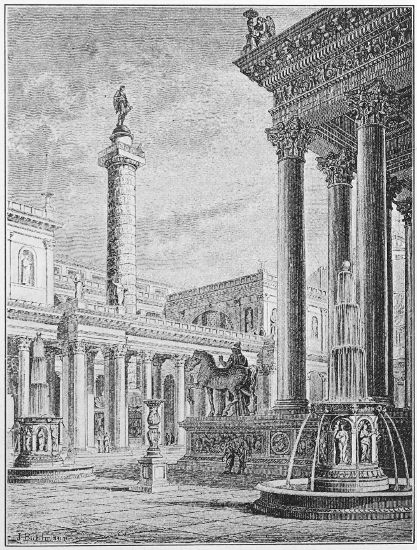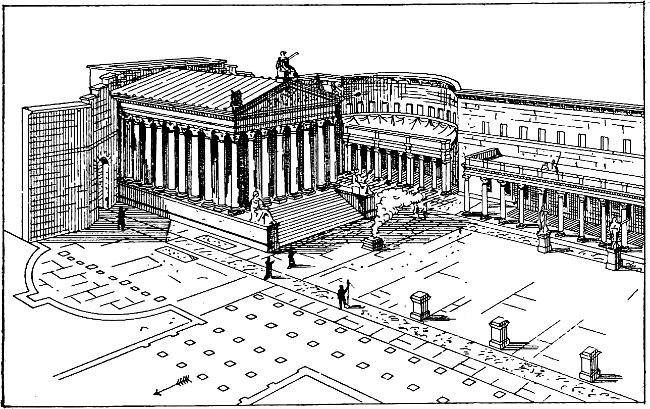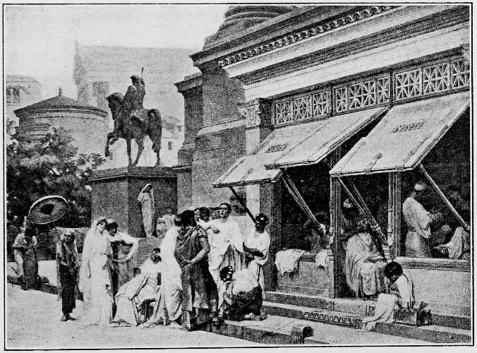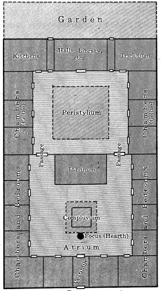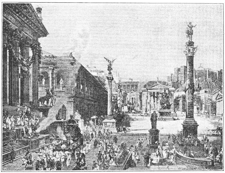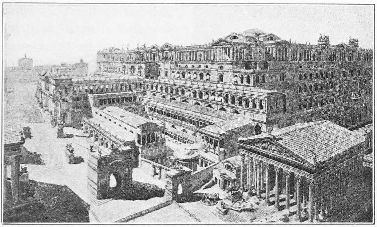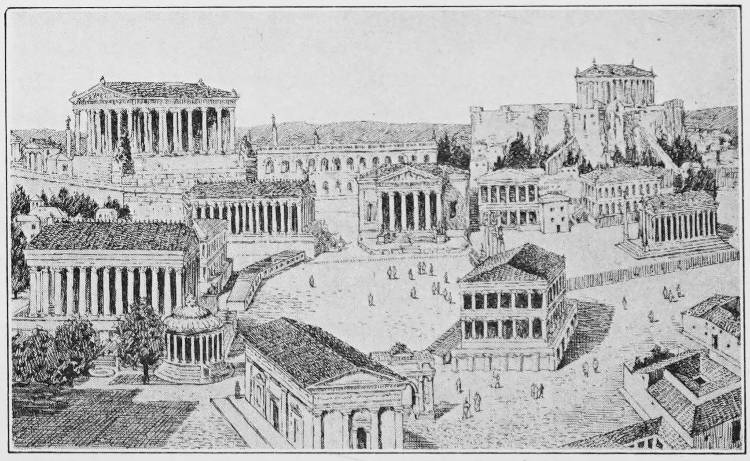 The illustrations, which, it is hoped, add considerably to the interest of the book, have been collected from many sources. Many of the highly informational “restorations” included are from the monumental work of Jakob von Falke, Hellas und Rom, the English version whereof has long ceased to be available to American readers.