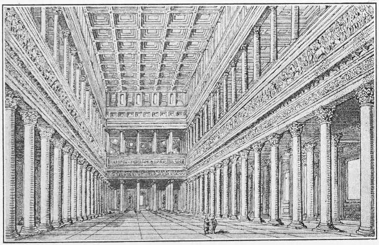 [200] The tepidarium in the later Baths of Diocletian was about 300 feet long by 92 feet wide, but probably that in the Baths of Trajan was somewhat smaller.