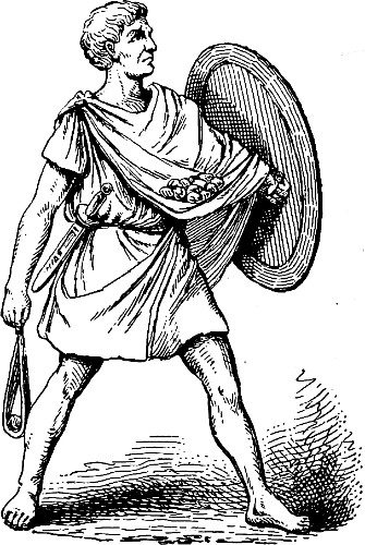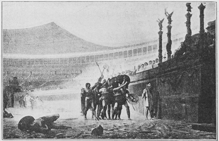[218] There were at least two other types of heavy-armed gladiators who are often mentioned—the “Samnites” and the “Myrmillones”; but it hardly seems profitable to examine the small particulars in which their arms differed from those of the “Thracians.”