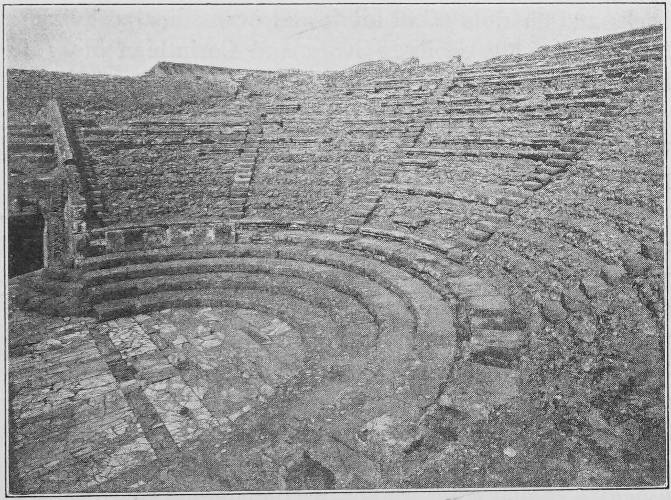 [204] Italian audiences stowed very close. According to the marking upon the stone seats in the theater at Pompeii, only 16 inches were allowed for each spectator.