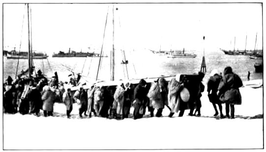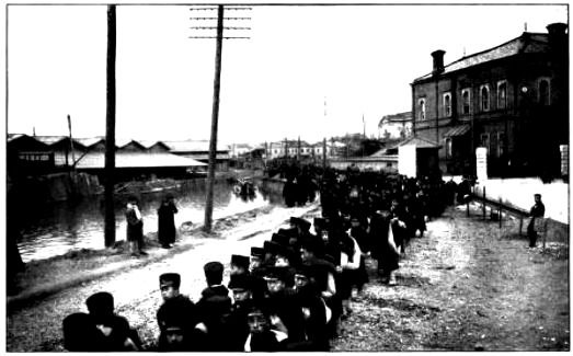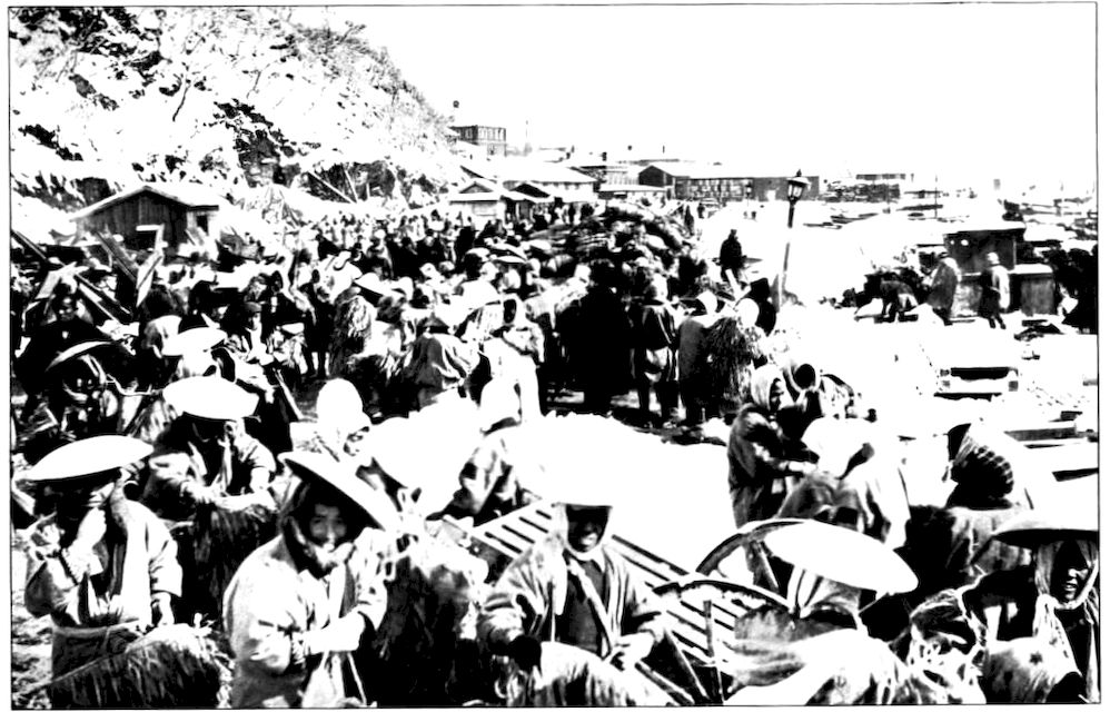 PRISONERS TAKEN AT PORT ARTHUR WAITING TO BOARD JAPANESE TRANSPORT