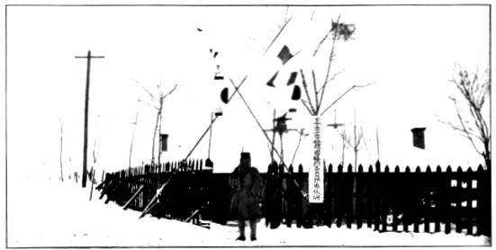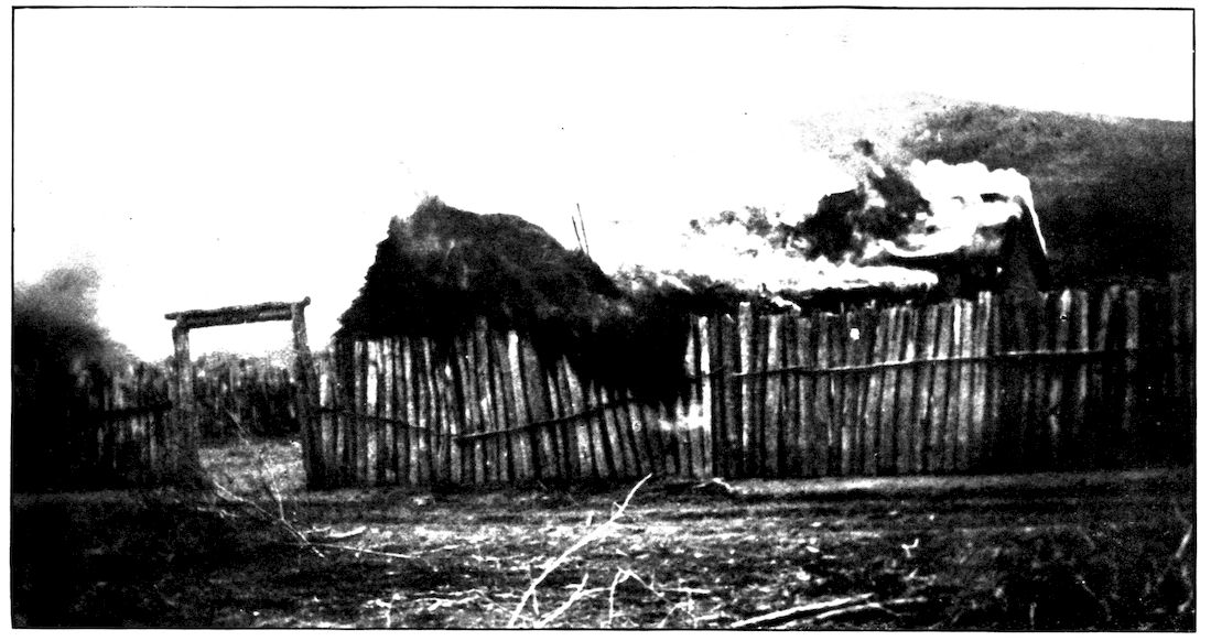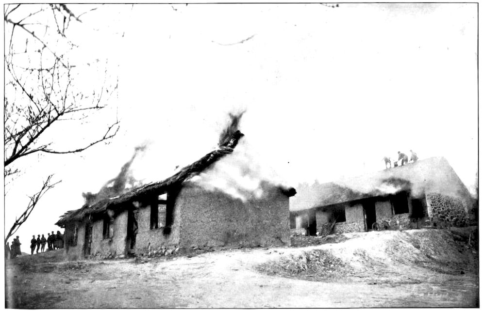 VILLAGE HUTS AND STOCKADE BURNING NEAR MUKDEN