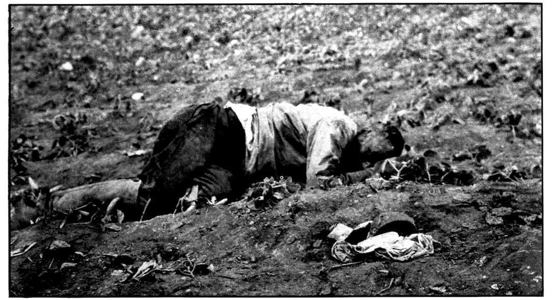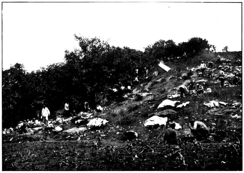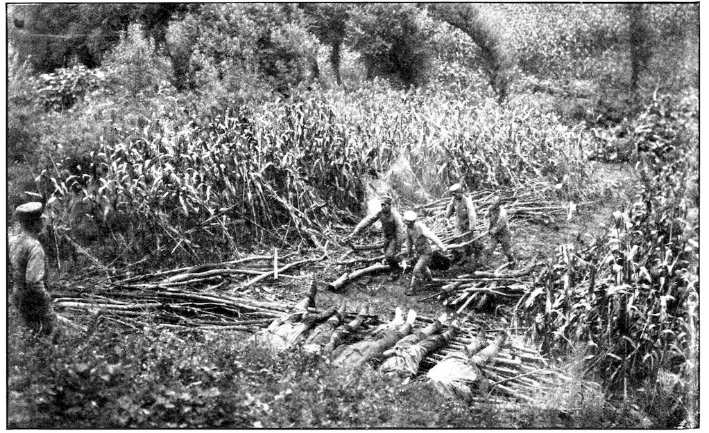 INFANTRY HIDDEN BY CORNFIELDS AND RAVINES WAITING THE ORDER TO ADVANCE