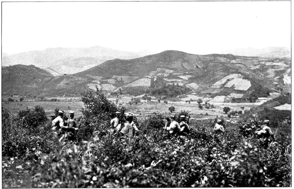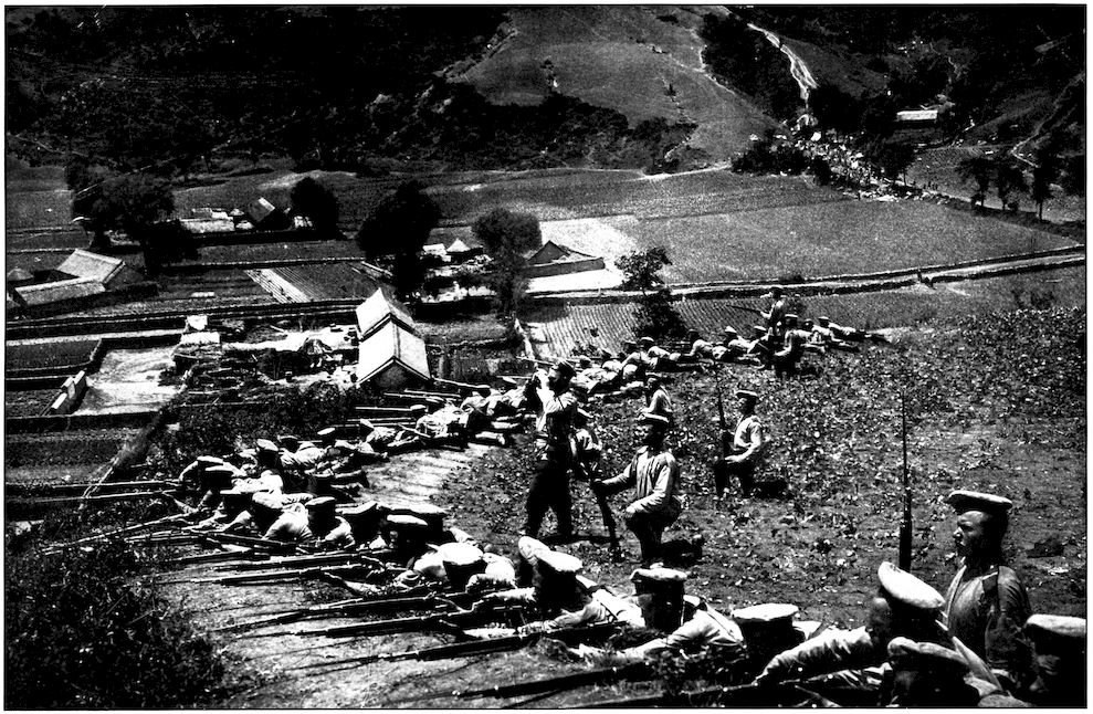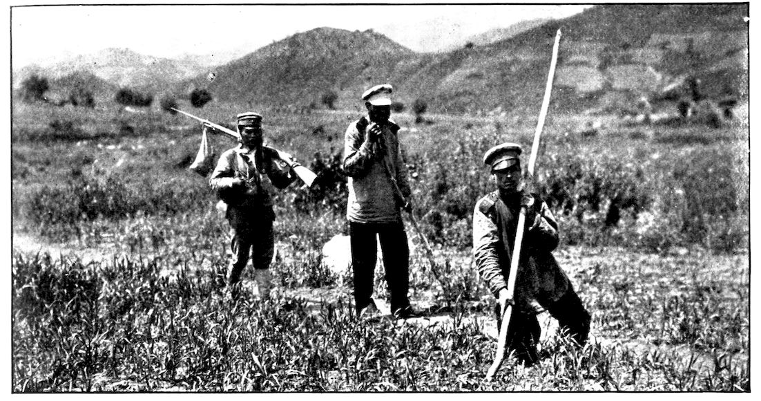 JAPANESE INFANTRY CREEPING THROUGH A CORNFIELD TOWARD THE RUSSIAN POSITION NEAR HOOZAN