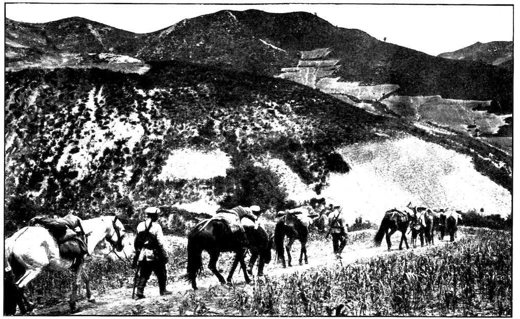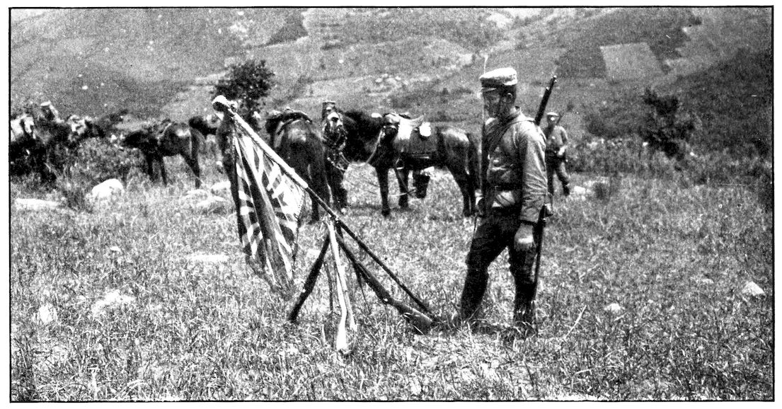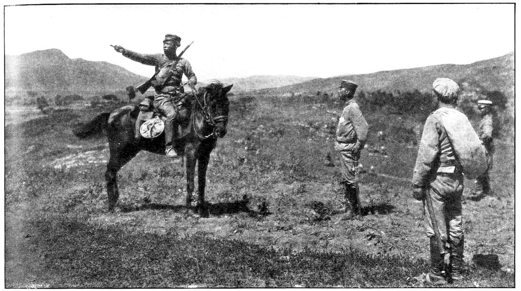 RUSSIAN SCOUTS HALTING AT MONTOUR PASS, NEAR MUKDEN
