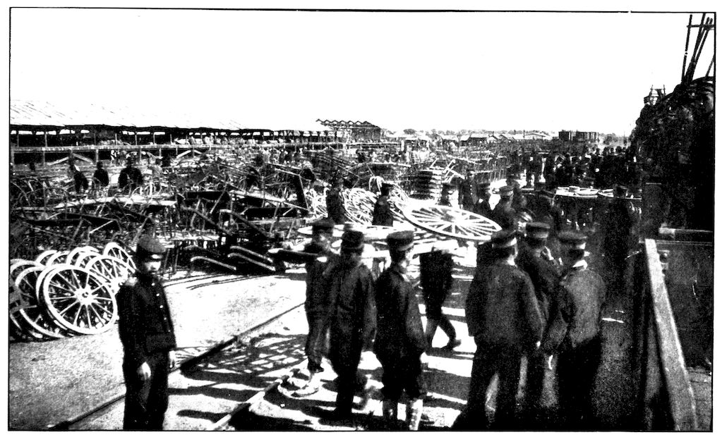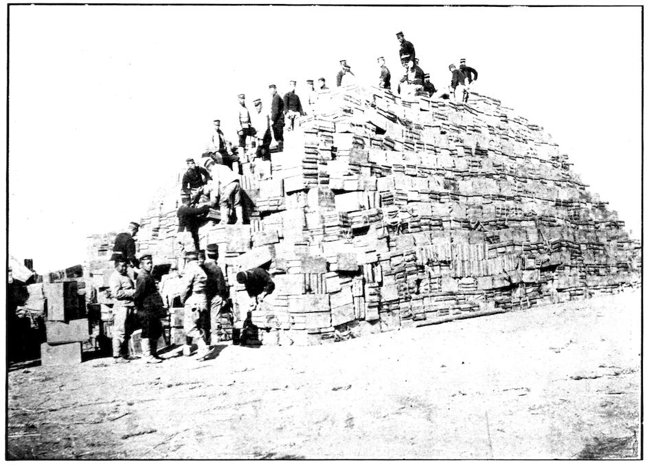 FIVE-HUNDRED-POUND SHELLS WAITING TO BE HURLED INTO PORT ARTHUR