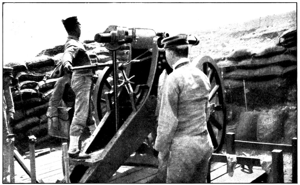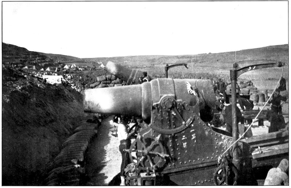 TWO OF THE GREAT TWENTY-EIGHT CENTIMETER SIEGE GUNS USED BY THE JAPANESE AGAINST PORT ARTHUR