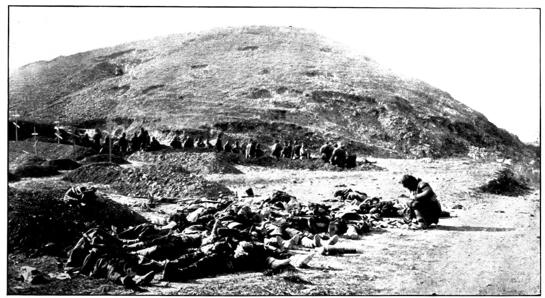 CHINESE DIGGING GRAVES FOR RUSSIAN DEAD AT HIGH HILL