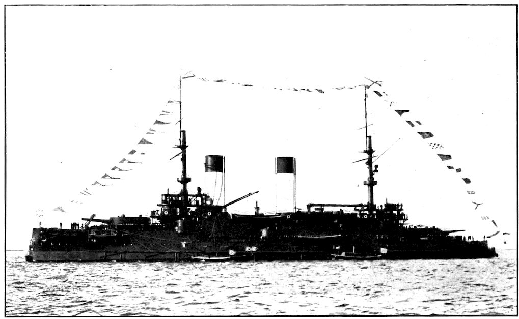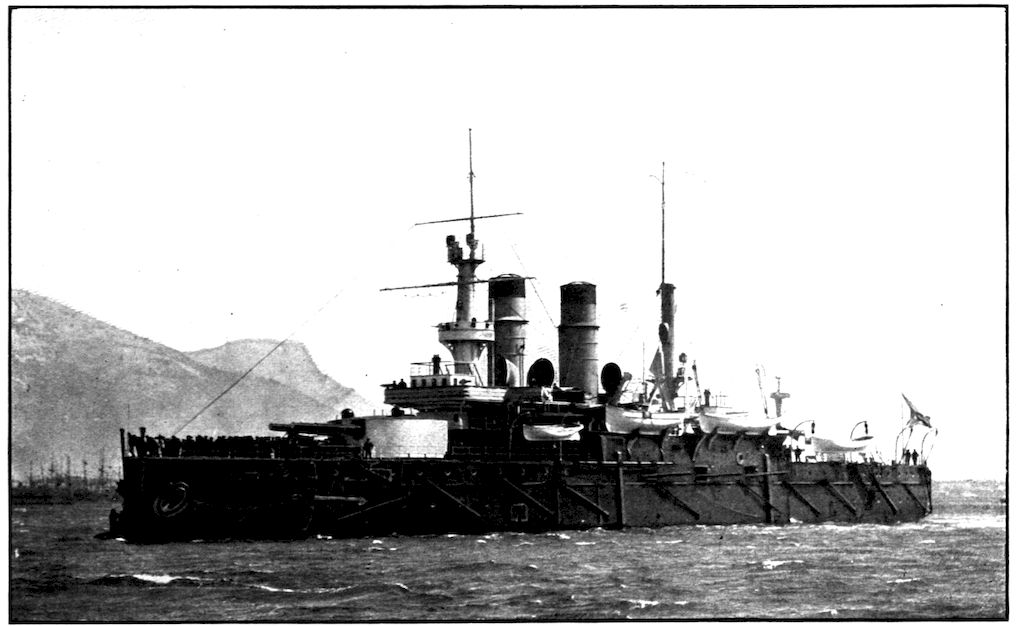 Built in 1901; of 13,600 tons, has four 12-inch, twelve 6-inch Q. F., and forty six smaller guns. The speed is 18 knots