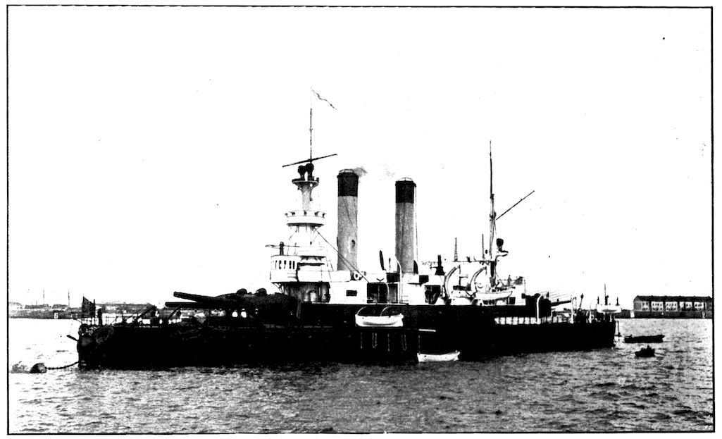 An old boat, built in 1887; armed with two 12-inch, four 9-inch, eight 6-inch, twenty-four smaller guns, and five torpedo tubes