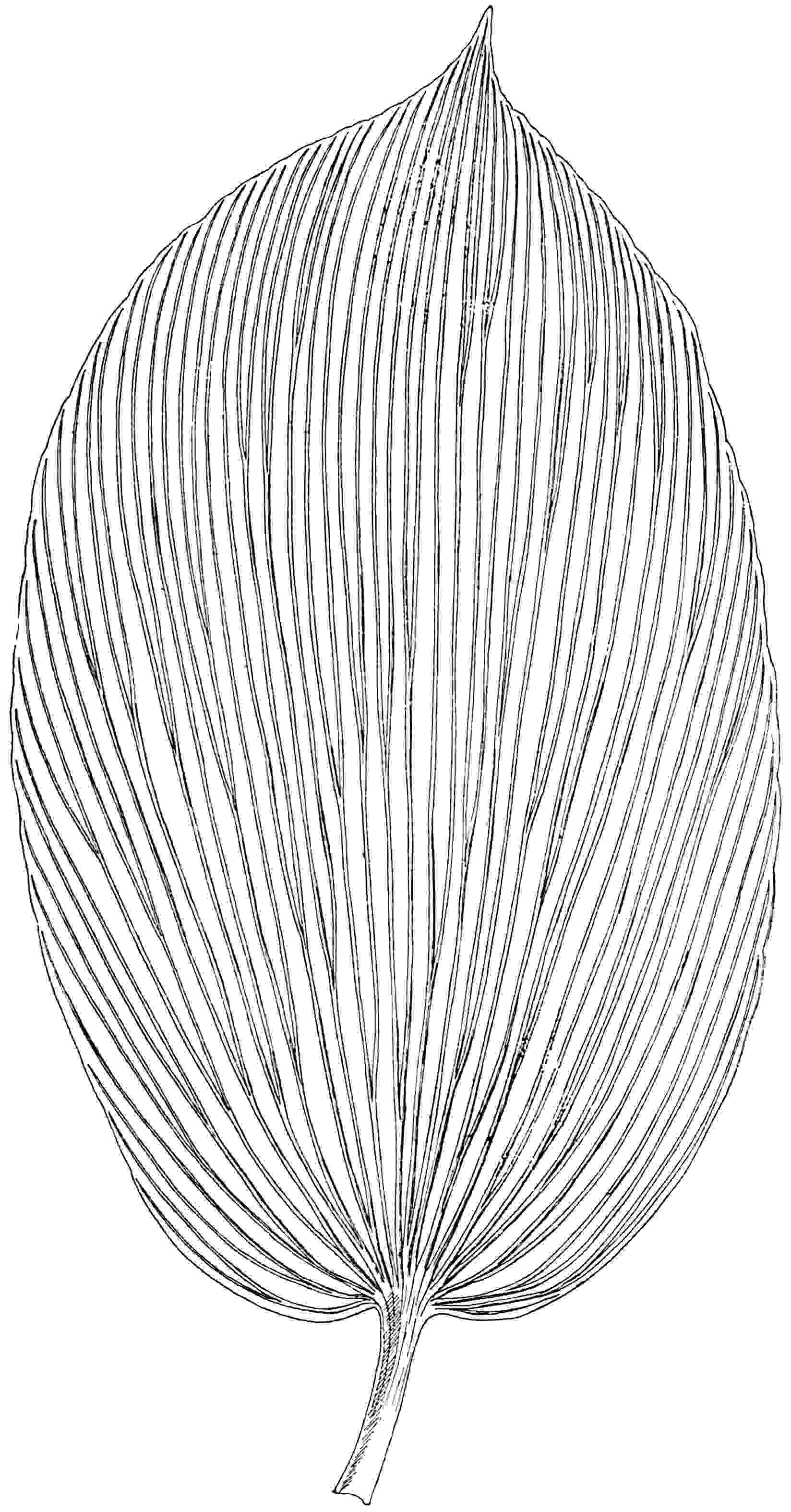 This type[1730] is more familiar under the name Ctenis falcata given to it by Lindley[1731], but if we follow Lester Ward[1732] in strict observance of the rule of priority, a course from which I have frequently deviated on the ground of long usage, the less familiar designation must be adopted. Fronds pinnate; long and tapered linear pinnae sometimes exceeding 12 cm. in length and 1 cm. in breadth attached obliquely or almost at right-angles to a fairly broad rachis (fig. 626). The lamina is broadest at the base and the lower margin is strongly decurrent, tapering distally to an acute apex. The parallel and frequently anastomosing veins diverge slightly in the basal region of the pinnae. Though usually separate to the base, the laminae of adjacent pinnae may be continuous as in a pinnatisect leaf[1733]. This species is recorded also from North America, and fronds of similar habit are figured by Fontaine[1734] from the Jurassic of Oregon as Ctenis orovillensis: a fragment recorded from Jurassic rocks in Afghanistan as Ctenis sp. may belong to C. sulcicaulis[1735].