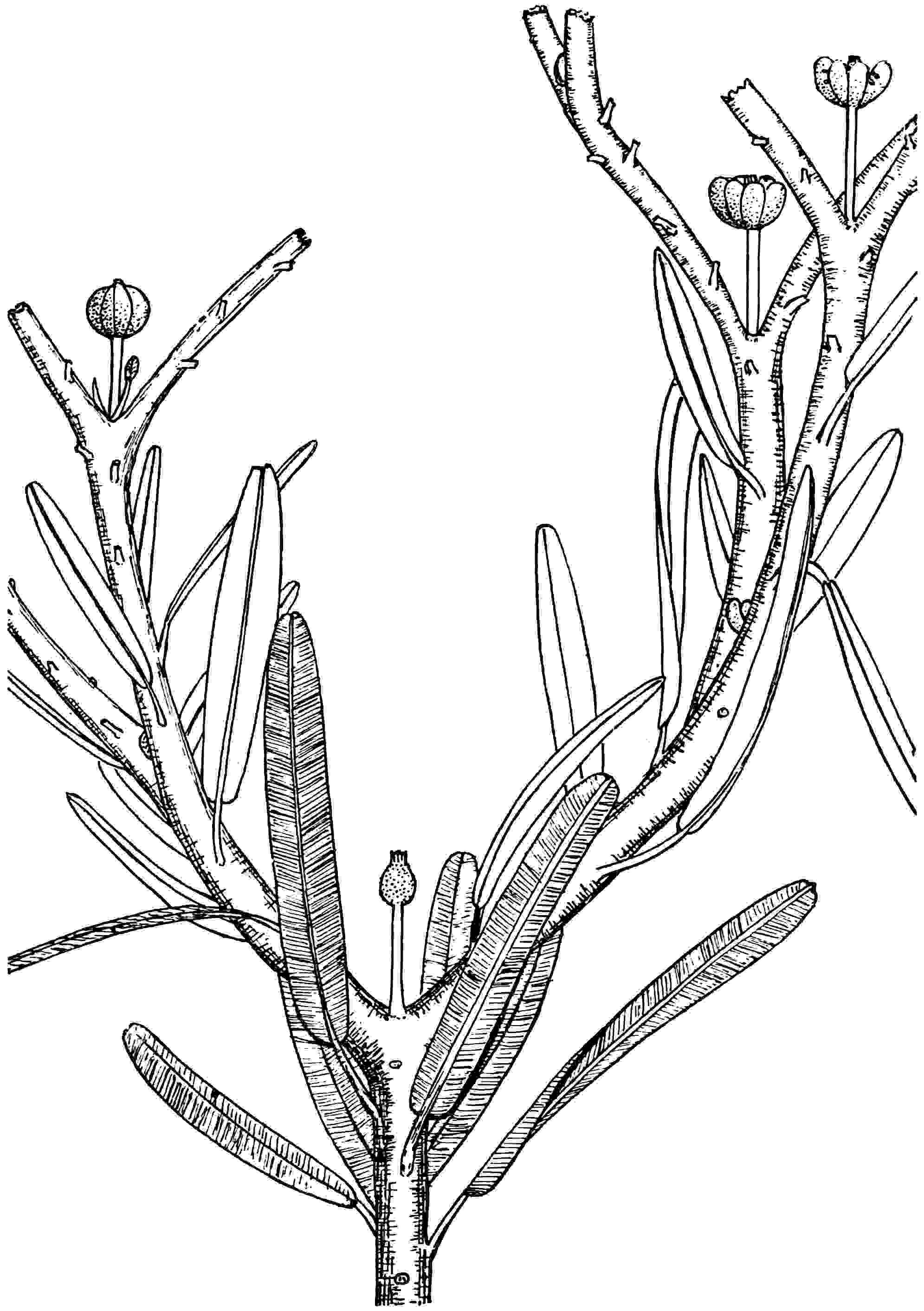 This Wealden species recorded from North Germany[1653] and the Sussex coast[1654] has broader pinnae laterally attached to the 565rachis. Miss Holden describes the stomata as covering the whole lower surface of the pinnae except over the midrib. This description must be revised in the light of Halle’s results obtained from an examination of the cuticle of the type-specimen of the species in the Berlin Museum. He finds that the edges of the pinnae are strongly revolute and thus form a deep dorsal canal which is almost closed[1655], a form of lamina, as seen in section, very similar to that of an Empetrum leaf. The stomata are confined to the groove. It may be that the specimen examined by Miss Holden is specifically distinct or, as Halle also suggests, the cuticle obtained from the English fossil may not represent the whole surface but only the walls of the canal with possibly a portion of the cuticle of the outer dorsal surface. This type of leaf described by Halle is similar to that of P. insignis with the xerophilous character intensified.