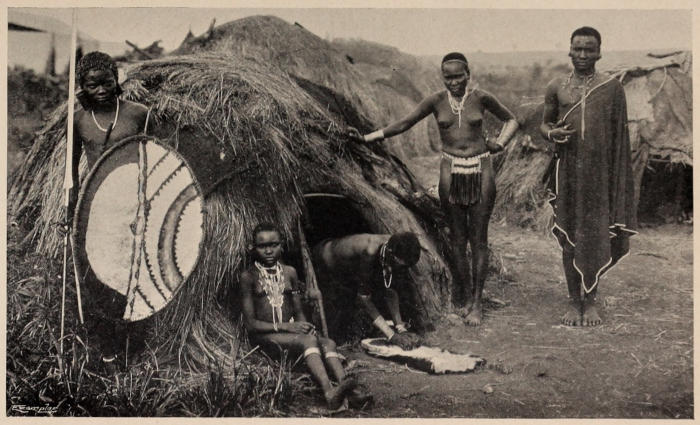 The people who live in the district through which we had hitherto passed are called the Masai tribe, a nomadic folk who travel about from one place to another, according to the pasture the land offers for their goats and sheep. They have distinctly warlike propensities, and a warrior chief is often met having a few armed followers, who, like their master, smear their bodies with grease and red earth, only wearing a small strip of cloth, or an animal’s skin over the shoulder, and sometimes a few feathers in their matted and oiled hair. The fierce opposition they showed to the pioneer Missionaries is now no longer displayed; in fact they appear somewhat timid and reserved.