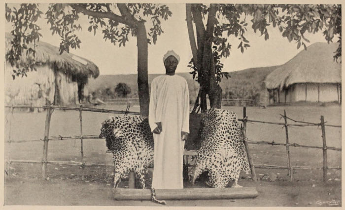 These Batoro have grown absolutely reckless in the hunt. Their method is to surround the spot where the leopard is known to lie crouched, and slashing down the thick vegetation that conceals their prey, they gradually draw closer and form a smaller circle round it. All the time they scream and pour down invectives on the head of the leopard, and by the time it actually appears in sight they have worked themselves up into such a state of excitement that, losing all self-control, some will actually throw themselves upon the infuriated creature.[203] With one last death effort the leopard throws all the strength of its fury into its final attack; torn, and perhaps with mangled limb, the man is released from the grasp of his foe by a hundred spears being run through its body. The injured are then borne on stretchers in triumph to the dispensary, and while the wounds are being attended to, the carriers and friends laud the extraordinary prowess of the patient. Every man who is able to carry home a blood-stained spear is sure of his wife killing the fattest goat or cooking the best possible meal in their honour.