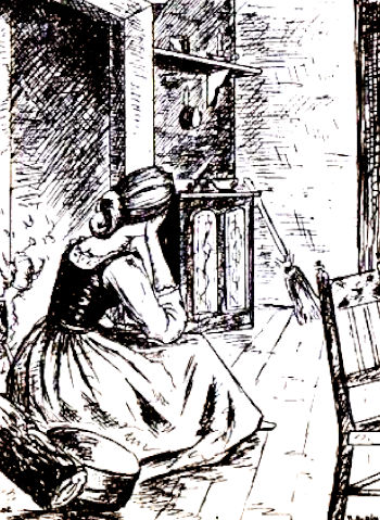 [7]«Alkonduki vin, vere!» ironie respondis la pli juna fratino: «nenia estas loko por cindro-kribrantino; restu hejme, kaj faru vian laboron».
