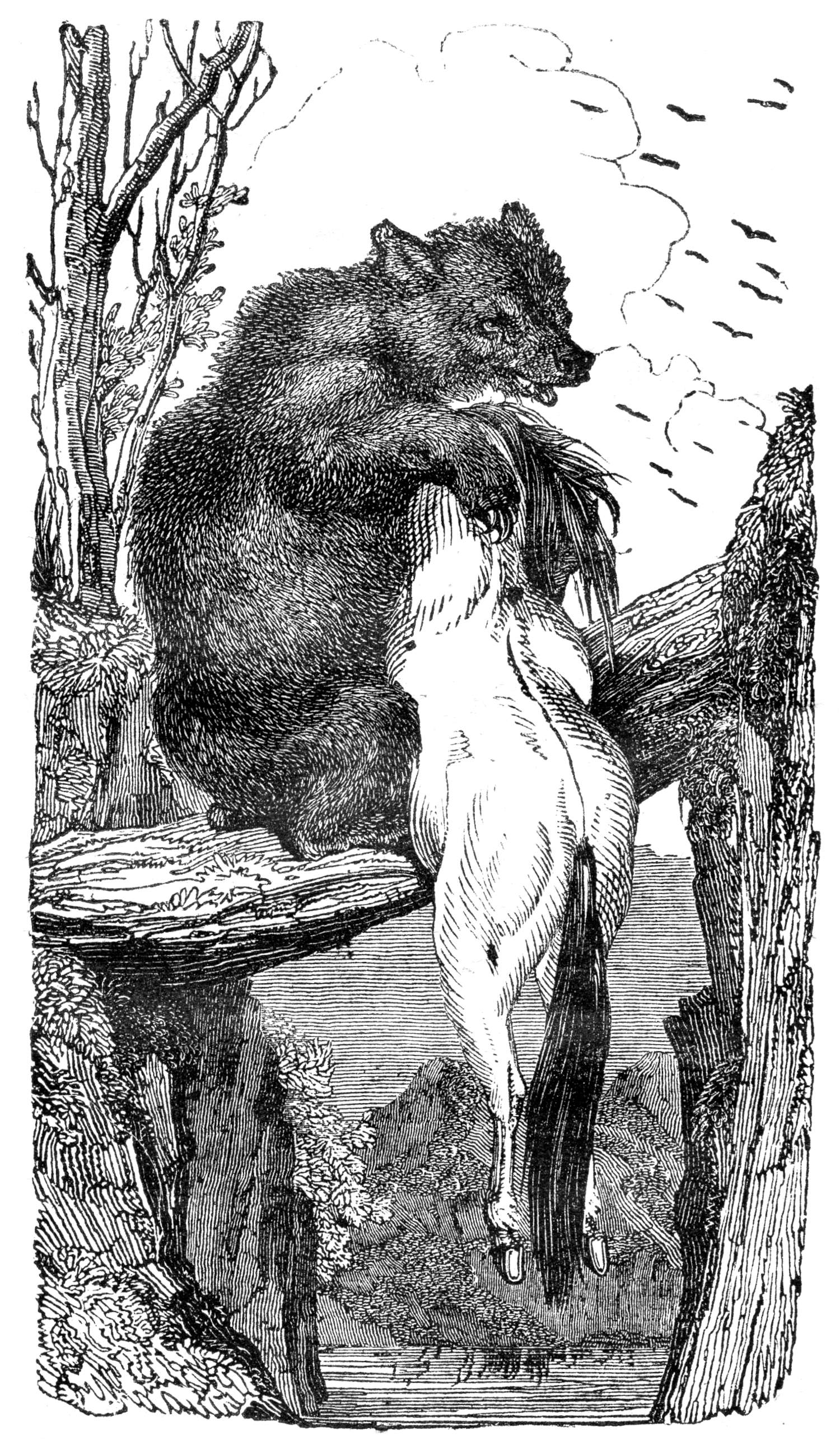 The Brown Bear of the northern parts of Europe is not so ferocious as the Grizzly Bear, but of prodigious 6strength. Mr. Lloyd, in his Northern Field Sports, says, “he walks with facility on his hind legs, and in that position can bear the heaviest burthens.” Indeed Mr. Neilson (a Swede) says, “a bear has been seen walking on his hinder feet along a small tree that stretched across a river, bearing a dead horse in his fore-paws.”