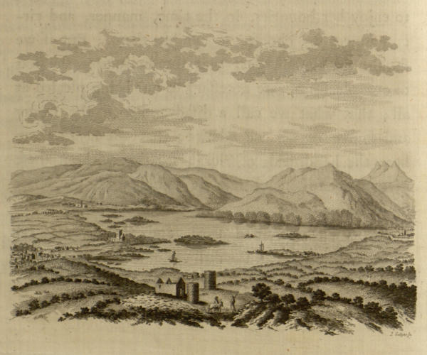 [3] I have included the several ranges of mountains which form the shores of this lake, under the name of the most considerable, to avoid multiplying uncouth terms. What I have called Ghirmeen is known by the several denominations of Doogery, Ghirmeen, and Derry-Carnagh: On the opposite side, besides Cahirnee, are Derry-Lishigane, Galloveely, and Derry-Arde: and to the East, under Crom-a-glaun are included, Bolinendra, Derry-Dimna, and Derry-Cannihy.