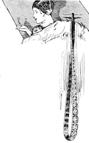 "Bet," he said as they were at the door ready to leave, "you seem darned anxious to get me out of the house to-night. What's the idea, hon? Surprise party, or something? And, say—why'n thunder don't you wear your necklace any more? If this is a party, go put your sparklers on. You look half naked without 'em!"