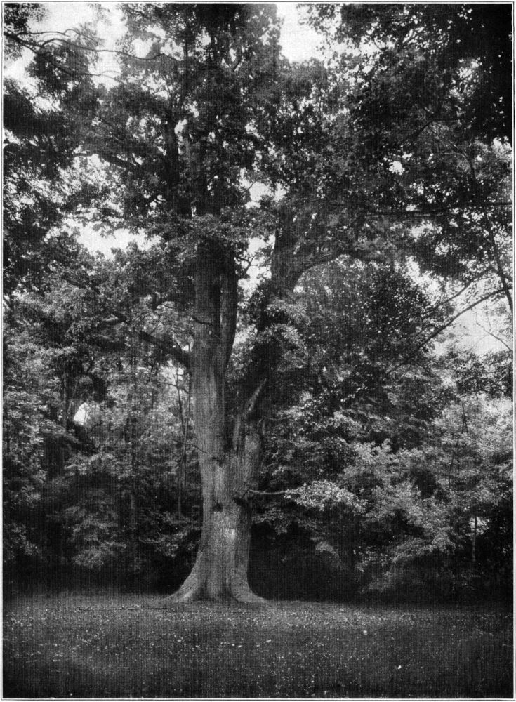 Ich erinnere mich von meiner Studienzeit her noch einer Rieseneiche im Auenwald bei Leutzsch. Sie sollte ein tausendjähriges Alter haben und besaß einen Stammdurchmesser von zwei Meter. Auf der Fahrstraße Leipzig–Leutzsch–Böhlitz–Ehrenberg sehen wir noch jetzt berühmte Eichenbestände von ähnlichem Ausmaß (Abb. 18), und eine Eiche der Maslauer Auwaldbestände darf sich in ihrer Wuchskraft und stolzen Baumschönheit diesen Veteranen getrost zur Seite stellen (Abb. 19). In Abbildung 20 erblicken [283]wir einen solchen Auwaldriesen im Rhedenholz bei Roßwein längs der Freiberger Mulde.