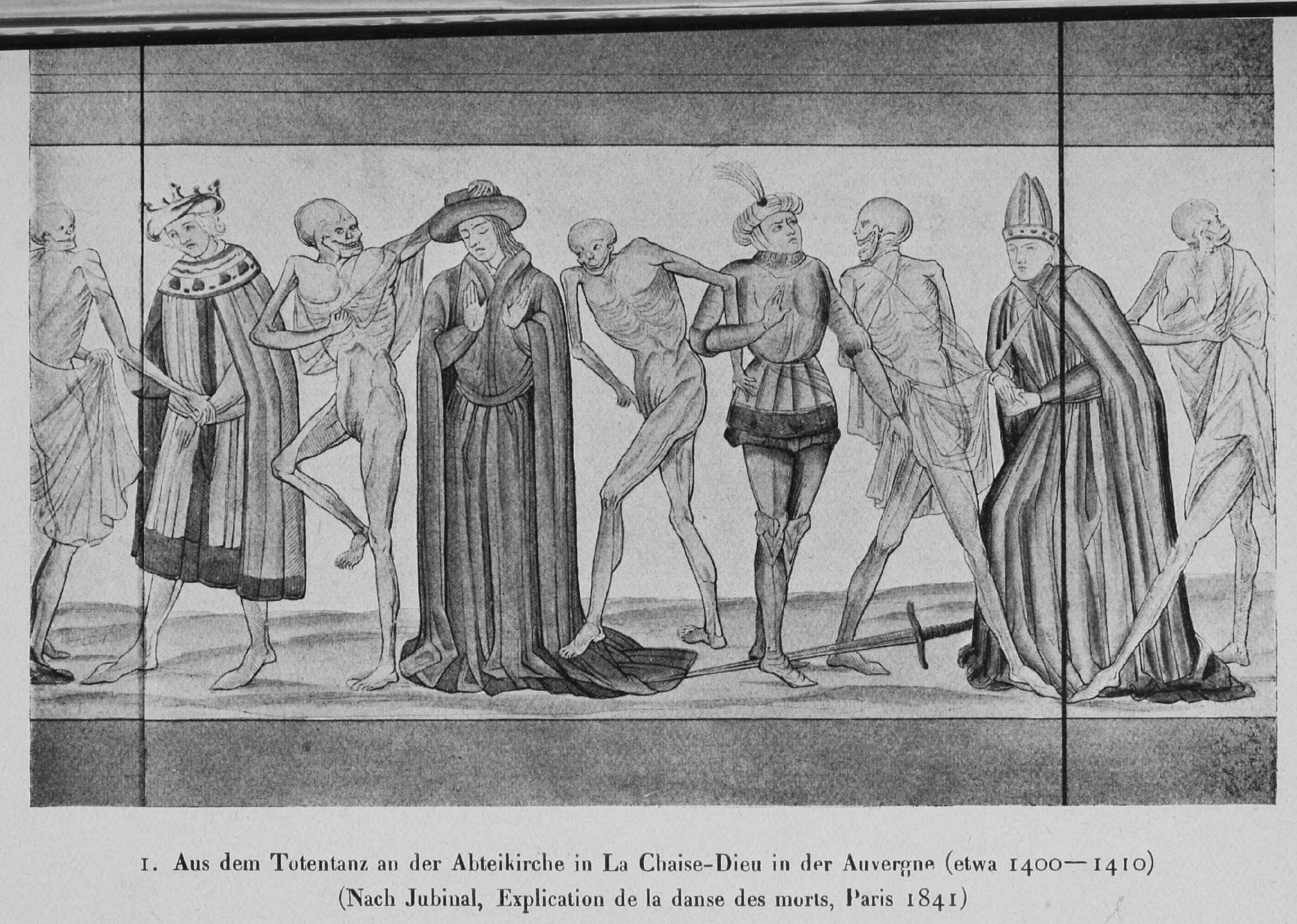 1. Aus dem Totentanz an der Abteikirche zu La Chaise-Dieu in der Auvergne (etwa 1400-1410)