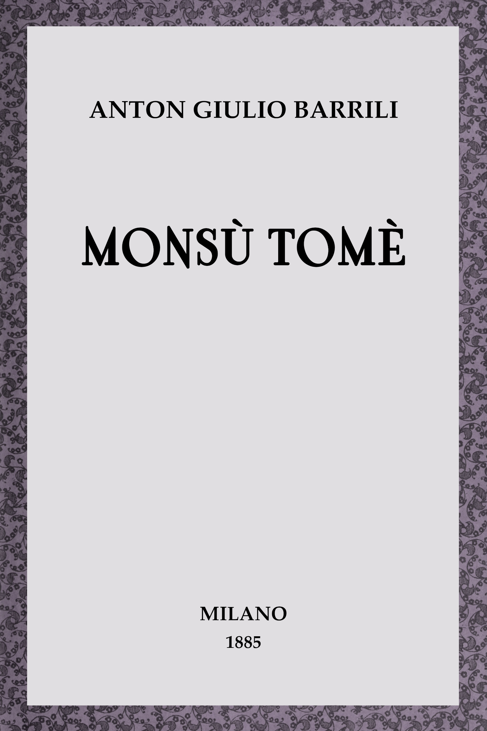 Bartolomeo, Tomè, Monsù Tomè, fu un nome proprio assai comune nel secolo scorso e nei principii del secolo presente. Ora hanno preso il sopravvento gli Ettori, gli Alessandri, i Cesari, gli Attilii, tutti nomi d’eroi, che fanno augurar bene delle nuove generazioni. Ma anche Monsù Tomè fu un eroe; per lui l’esperimento è fatto, e non c’è più da temere che gli augurii si sperdano, o che le speranze vadano in fumo.