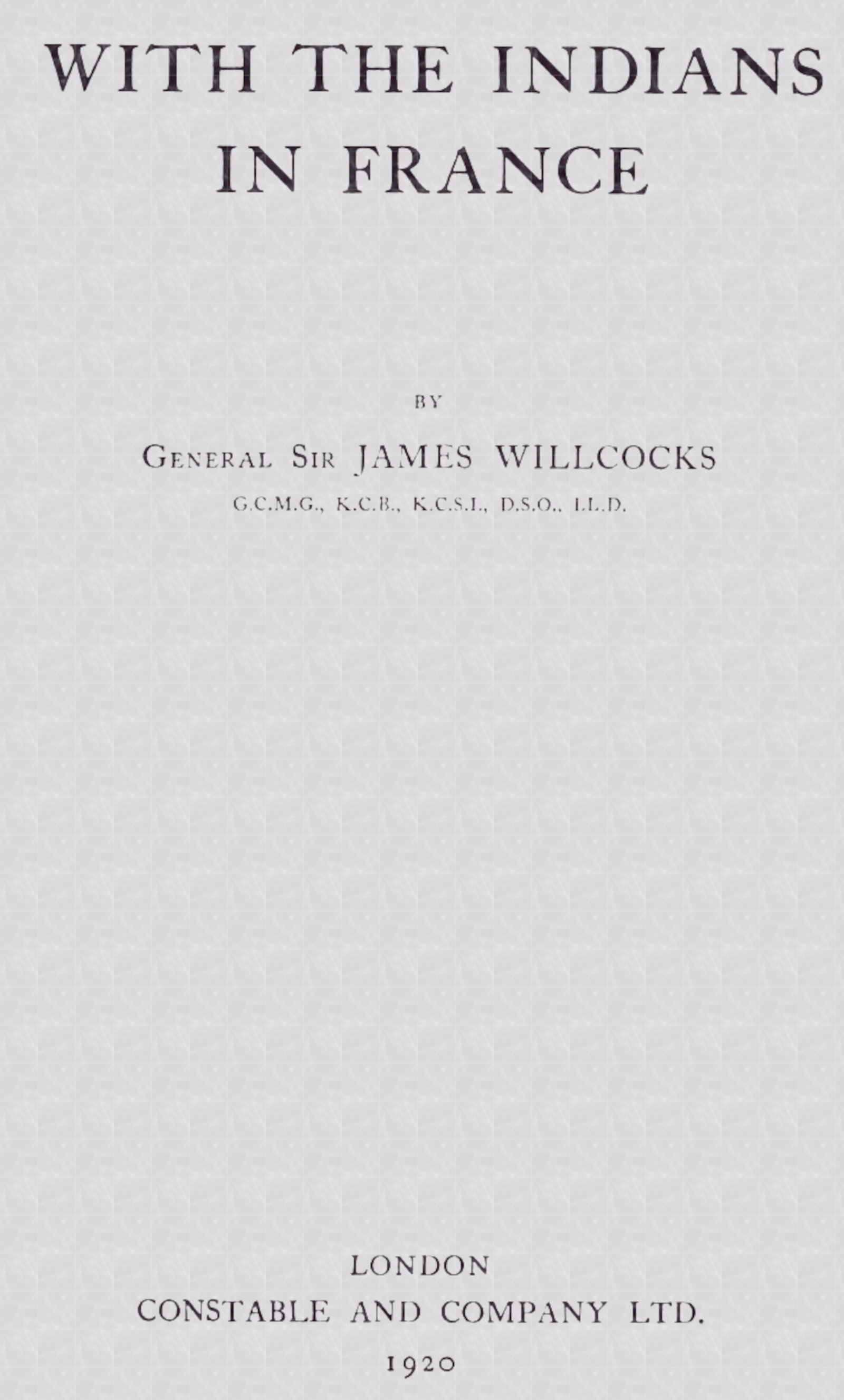 I have not attempted to write a Military History of the Indian Army Corps in France. I lay no claim to describing the course of events on the British Front, as a whole, during 1914–15, except in as far as they concern the Corps. The excellent account written by Lieut.-Colonel Merewether, C.I.E., Indian Army, and Sir Frederick Smith, Bart. (The Indian Corps in France, published by John Murray), both of whom served on my Staff as Recording Officers on behalf of the India and War Offices, and who have had at their disposal all the official records, furnishes ample details of the movements and the doings of the Corps as forming an integral part of the British Army in Flanders.