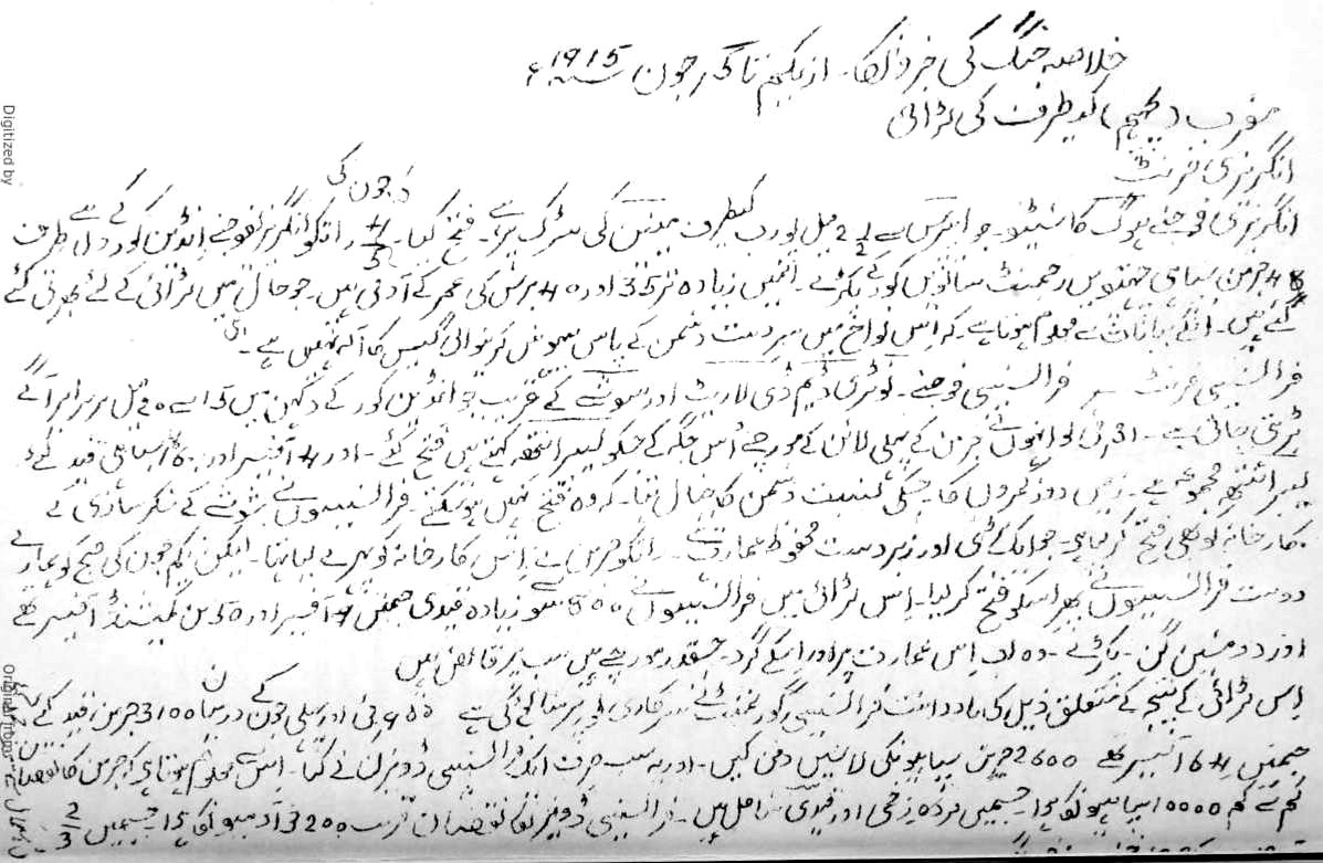 The test has proved the fine fighting spirit of officers and men and the dire need that existed for modern equipment. The aeroplanes, the howitzers, the reserve materials were non est, and although I do not know whether the 13Indian or Home Governments found the cash, whoever it is has had to pay pretty heavily for the failure to provide it in time.