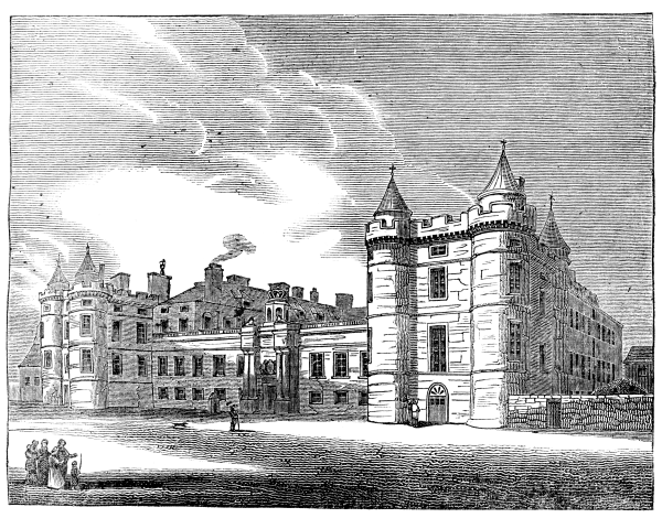 The earliest notice we have of the existence of a palace at Holyrood is no older than the beginning of the sixteenth century. The more ancient palaces of the Scottish kings were all to the north of the Forth, the country to the south of that river not having properly formed part of their dominions till a comparatively recent era. It is probable, however, that they may have had a residence at Holyrood before the year 1503, when we first find the palace expressly mentioned. After this, in 1528, James V. made great additions to the buildings already existing, or rather indeed rebuilt the whole from the foundation. A great part of this erection was burnt by the English in 1544; but the devastation committed on this occasion was soon after repaired; and a new 189palace built on a much more extensive scale than before. It was probably, indeed, a considerably larger building than the present, inasmuch as it is stated to have consisted of five courts, or quadrangles. Here the unfortunate Mary had her principal residence during the time she enjoyed her regal dignity; and here also her son James VI. held his court, till his accession to the crown of England. A considerable part of this building was afterwards burned down by Cromwell’s soldiers, and it lay in ruins till about the year 1670, when, by direction of Charles II. the present structure was commenced after a design of Sir William Bruce.
