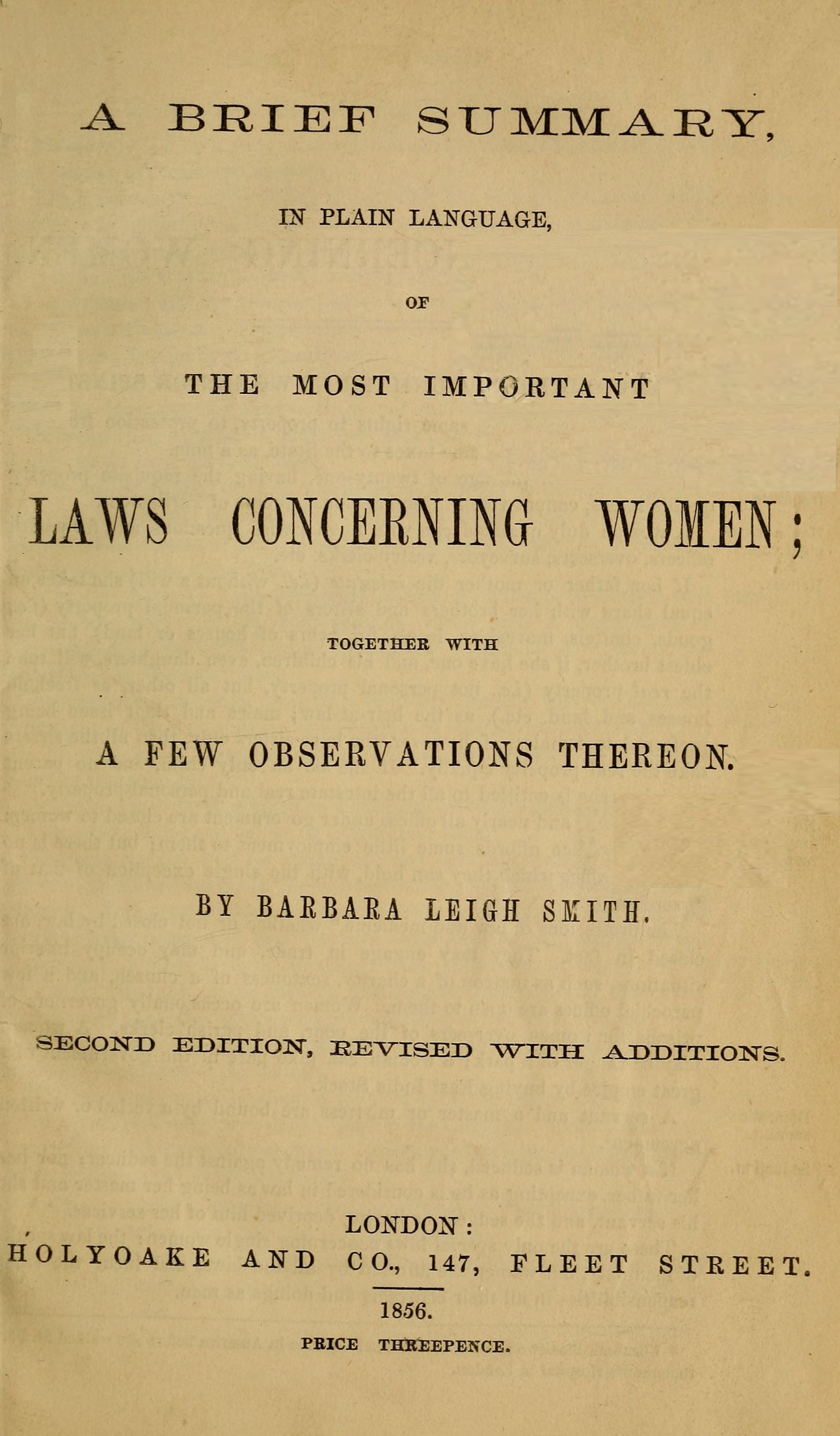 We do not say that these laws of property are the only unjust laws concerning women to be found in the short summary which we have given, but they form a simple, tangible, and not offensive point of attack.
