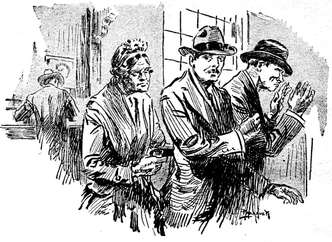 "Mr. Halloran and one of the local talent, I believe?" The words had a sarcastic smirk to them. "I had an idea some one might be coming along, so I stopped at the desk here to write out a deposit slip. Wonderful device, that, for killing time and covering the back trail—and who'd ever suspect a nice old woman like me?"
