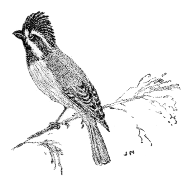 The shrike-tit, that gorgeous yellow-and-black fellow with the black crest, is one of the loveliest birds amongst our regular visitors, and one of my favourites, for he has such an unsuspicious nature. His long drawn out, rather plaintive note is very easy to imitate, and we can always bring him down to us by repeating the call. Again and again I have seen the [Pg 16]simple creature hurrying through the wilderness in response to a human whistle, and flying wonderingly from tree to tree in search of his calling rival. Sometimes he comes within a few feet of us, dancing with rage and chattering angrily at the hidden intruder, before he discovers the fraud and flies off in disgust.