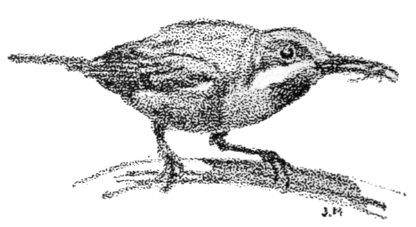 I can never make up my mind which I love most—the birds that live all the year round in the wilderness, and are so tame and friendly [Pg 20]that they come right up on to my verandah and sit and sing within a yard of my chair, or the visitors which bring the feeling of distant places with them, and carry my thoughts far, far away. But of one thing I am sure, and that is my gratitude to the man who left this little wild patch in the heart of the houses to be a sanctuary for all wild things. Noisy people passing by may think it is a mere empty patch of trees; but we who have sat silently on our verandah through the long still summer evenings and listened to the whisperings and stirrings, know that there is a distinct world of living things waking and moving down there in the shadows.