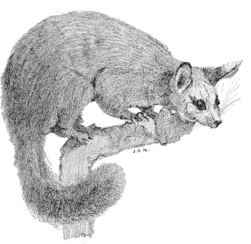 It always gives me a distinct thrill of pleasure to hear that quaint little note just beside my verandah, and its wild touch is a happy contrast to the jazz music thumped out by my neighbour’s pianola. More silent than the bandicoots, though no more stealthy, are the ring-tailed ’possums, of which [Pg 22]there are quite a number in the wilderness. Last summer one built on the roof of our verandah, and every evening, as we sat having our coffee in the dusk, we used to hear his little patter across the flat roof. We could see him leap forth into a branch of the tall wattle which bent towards the verandah, then up and across to the taller redgum beyond, and away down into the heart of the wilderness. Sometimes when the hot summer nights have driven off sleep I have heard him in the dawn, scrambling back to bed, just as the birds have been waking up. I must confess that I felt very proud at having such a rare and distinguished lodger.