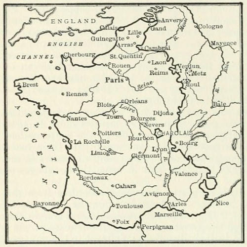 | The Treaty of Arras, 222. The French return to Paris, 224. The Pragmatic Sanction, 225. The atrocious crimes of the barons, 226. Gilles de Retz, 226. Charles begins the work of reform, 228. Agnes Sorel; the Praguerie, 230. Effective progress against England, 233. Expedition to Switzerland and Lorraine, 235. The battle of Sankt Jakob, 236. Military and financial reforms, 236. The close of the Hundred Years’ War, 238. The battle of Castillon, 239. The last years of Charles VII, 242. Quarrels with Burgundy and with the dauphin, 242. Death of Charles VII; the influence of his reign, 244. | |