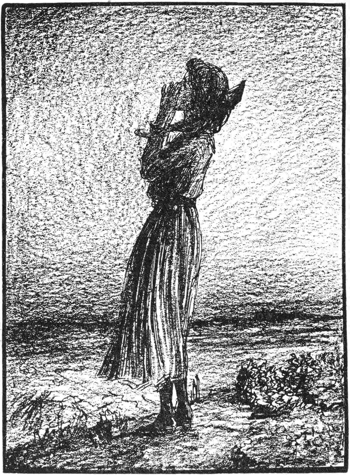 At length she started forward, then dropped again to scan the trail closely. It was getting dark now and tracks of any sort were hard to see, yet there were no new footprints on the sand-blown path. Then she made a trumpet of her hands and called and called; then listened intently. There was no responding cry. A breathless quietude settled over the desert. The nightingales were hushed. It was as if all living creatures of the vast sand wastes had gone to sleep. “Oh, Debue, Debue! Why did I let you go?” she cried aloud, but the great void around her brought no echoing cry.