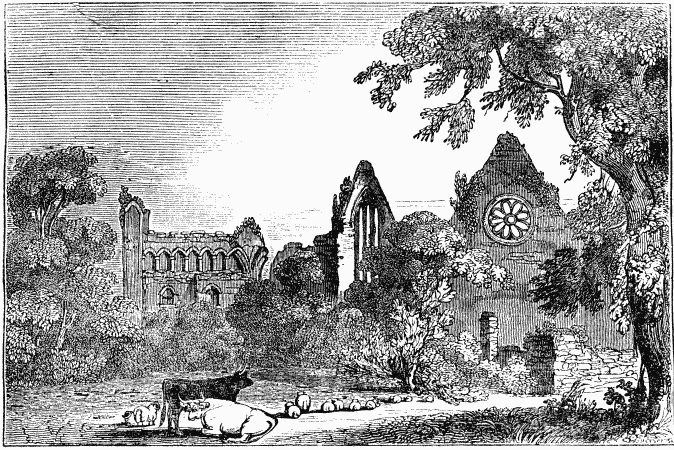 The funeral was attended chiefly by the personal friends and relatives of the deceased, and by the gentlemen of his acquaintance in the vicinity; but the inhabitants of the neighbouring towns and villages evinced their respect for his memory by spontaneously suspending all business and generally assuming the emblems of mourning, while the funeral train were proceeding to 304deposit the body in its last narrow dwelling. He was interred in his family burial aisle amidst the ruins of Dryburgh Abbey,—a spot of great picturesque beauty, lying on Tweed Side about half way between Smailholm, the scene of his simple infancy, and Abbotsford, the stately home of his latter years.