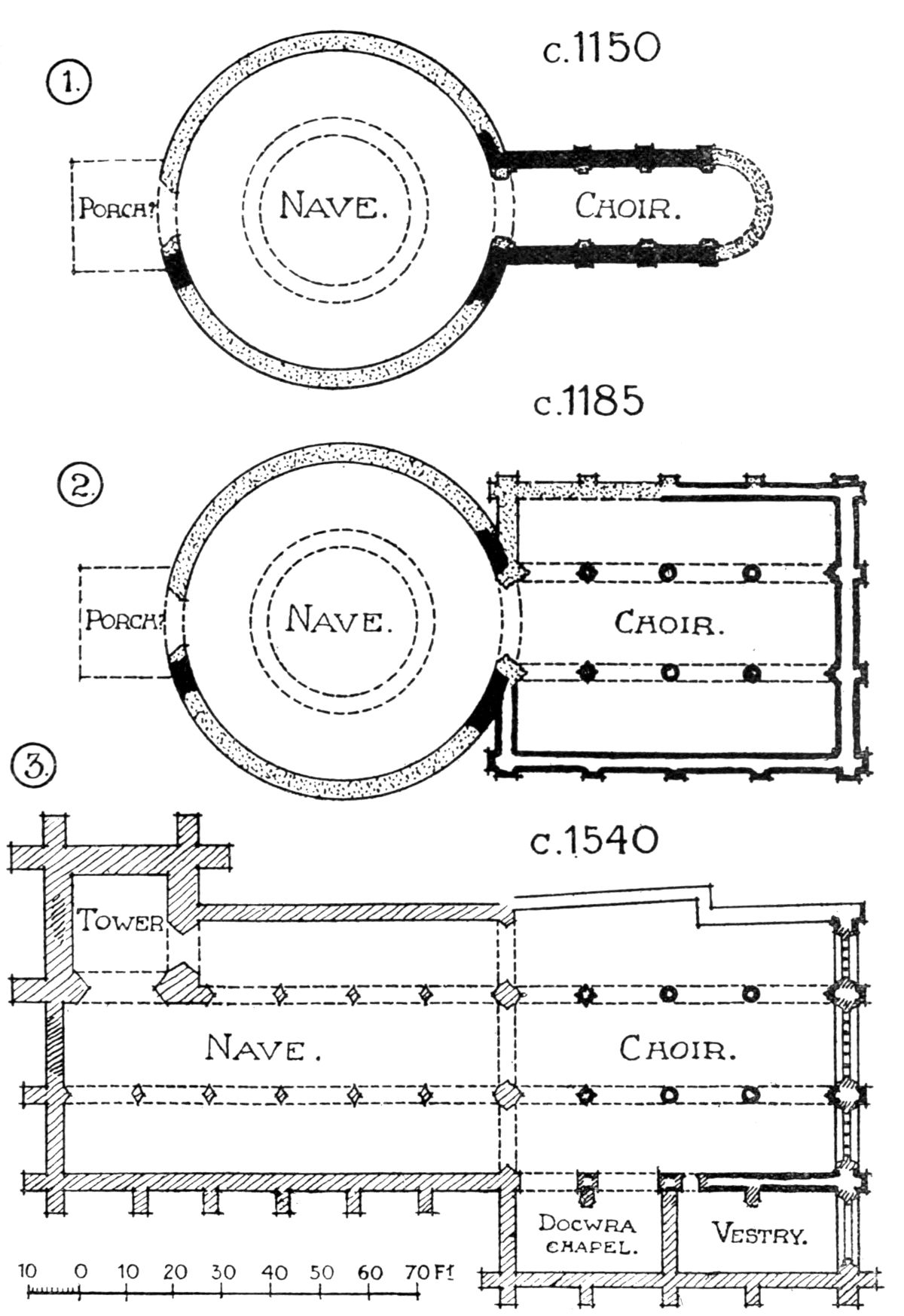 The new type of church is one having the great open nave, the long ranges of windows, and the slender piers which became so general in the Perpendicular period. They are, in fact, copies of the great friars’ churches which immediately preceded them. The friars originated and perfected the type which in the fulness of time was accepted and adopted by the parish church builder as the best and most suitable structure for his purpose which had yet been evolved.