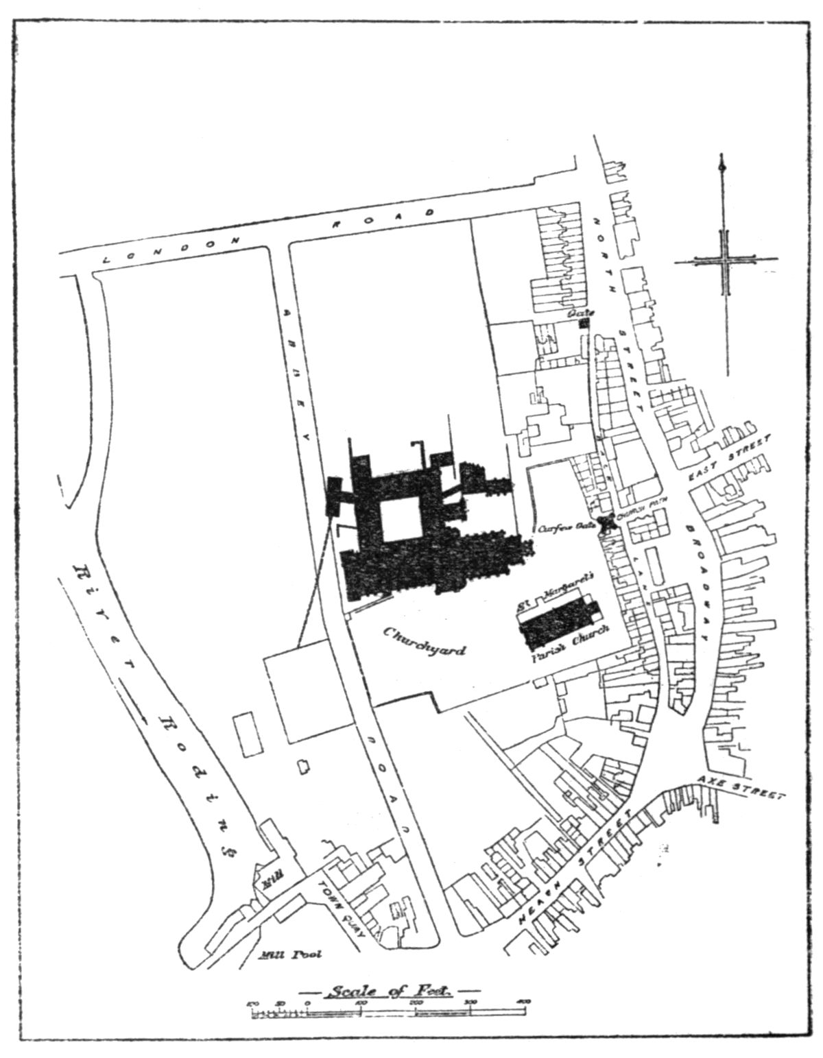Although little has been hitherto known concerning the buildings, it is possible, with the assistance of a plan of seventeenth century date, of documentary evidence of the period of the Suppression, and of the evidence of remains [265]discovered on the site, to present a very fair idea of the general arrangements of the Priory of Our Lady of Mount Carmel before its destruction.