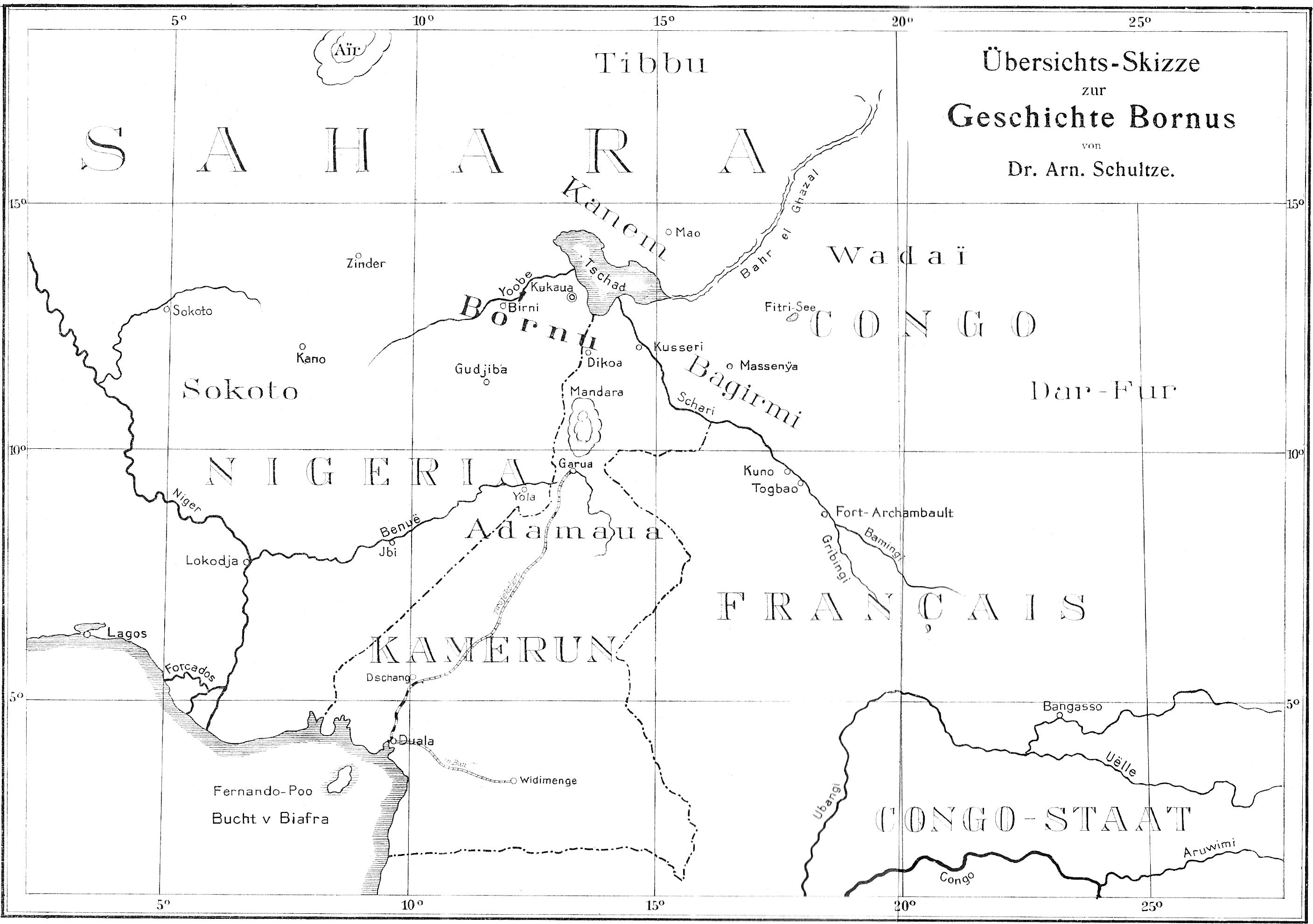 Beigabe zu Dr. Arnold Schultze, Das Sultanat Bornu mit besonderer Berücksichtigung von Deutsch-Bornu. (G. D. Baedeker, Verlagshandlung in Essen.)