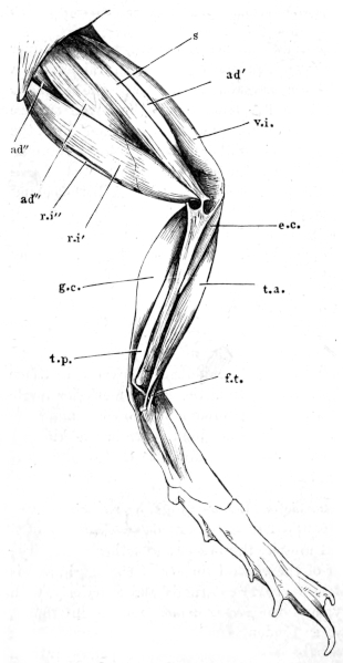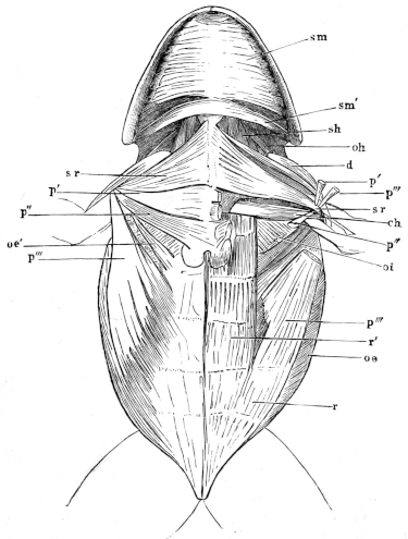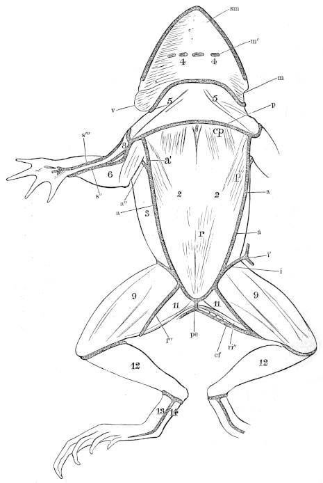 Lest more be anticipated from the book than it is intended to supply, I would observe that I have throughout had in mind only a descriptive anatomy of the indigenous (German) frog; a comparative anatomy of Batrachians was as foreign to my intention as were developmental or histological questions: hence morphological details must not be expected. Any hope of formulating a systematic nomenclature of the muscles has been abandoned; as neither one based upon their mode of action, of which we know so little, nor one based upon their origins and insertions, as demonstrated by the unpronounceable names of Chaussier and Dugès, is really practicable. I have therefore preferred to avail myself, as far as possible, of the received names, which have been chosen partlyix according to mode of action, partly according to origin and insertion, and partly according to position and form; while in the choice of new names I have given preference to the simplest.