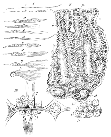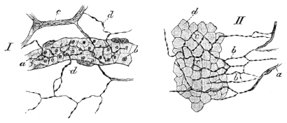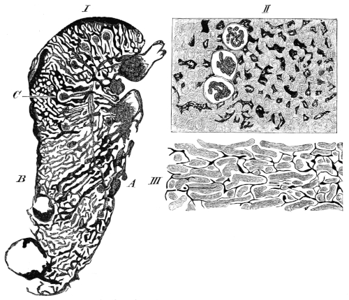 | I. | Kidney of Rana esculenta, partial injection of the uriniferous tubes with silver nitrate (Hartnack, Oc. I, Syst. 7). |