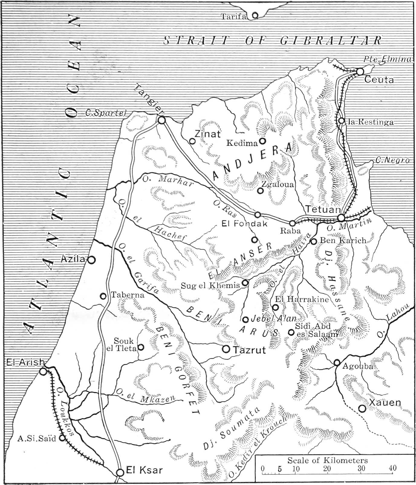 [100]This remark shows the efficiency of Raisuli’s secret service, for, a fortnight later, Mulai Ali broke with the Spaniards.