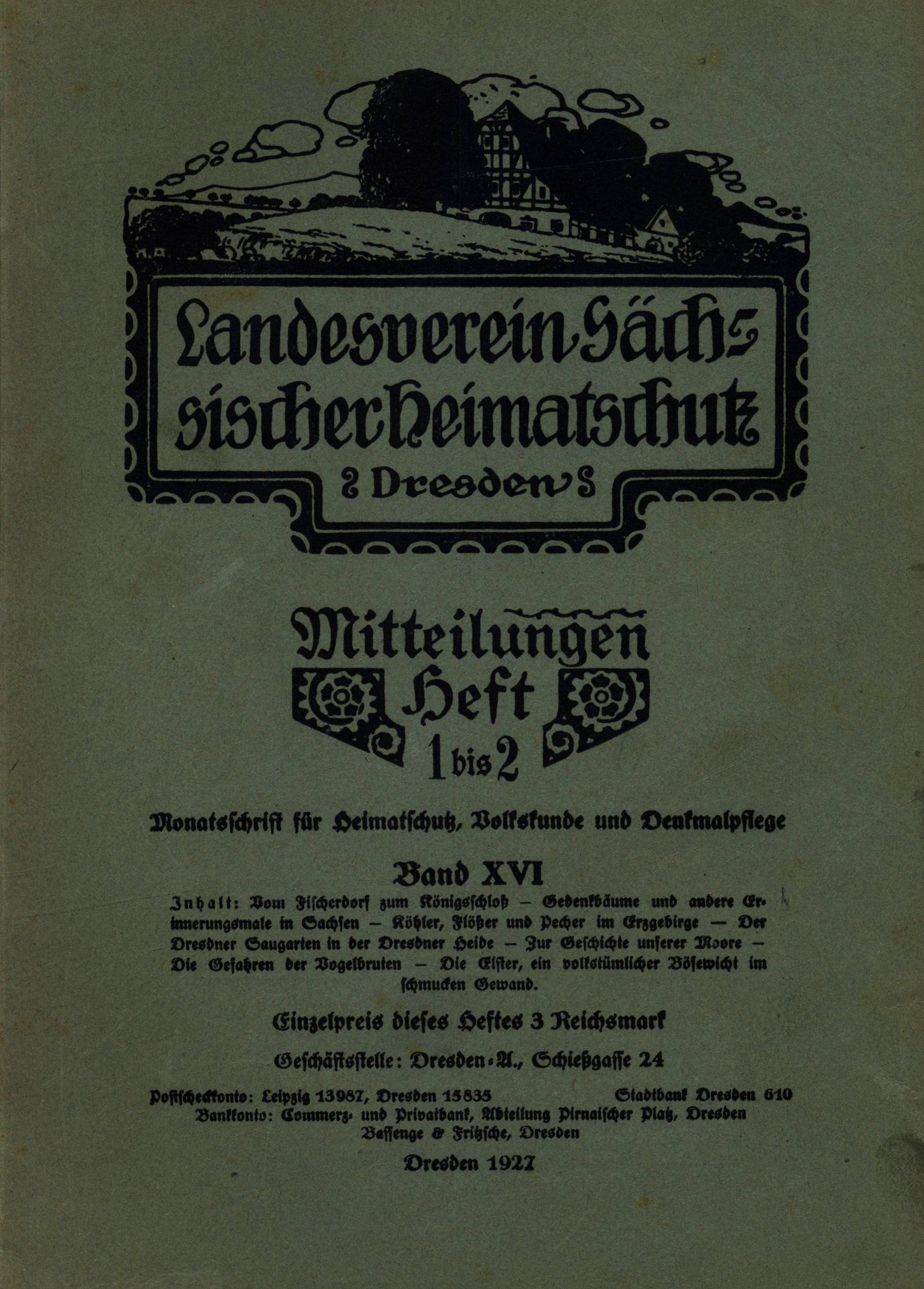 Inhalt: Vom Fischerdorf zum Königsschloß – Gedenkbäume und andere Erinnerungsmale in Sachsen – Köhler, Flößer und Pecher im Erzgebirge – Der Dresdner Saugarten in der Dresdner Heide – Zur Geschichte unserer Moore – Die Gefahren der Vogelbruten – Die Elster, ein volkstümlicher Bösewicht im schmucken Gewand.