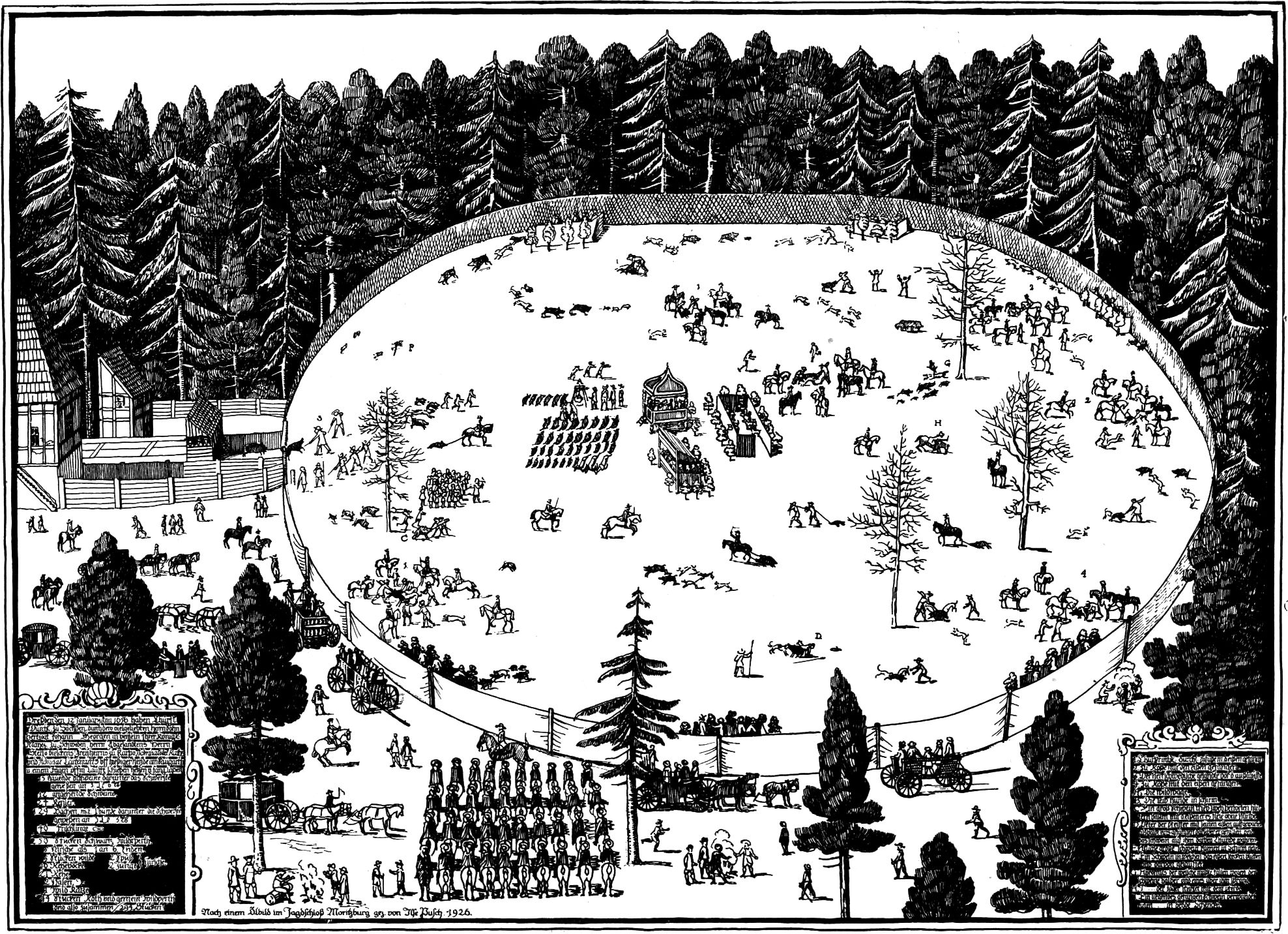 Zu jener Zeit sah Pillnitz schon einmal, wohl zum ersten Male, eine große Hofgesellschaft. 1607 weilte nämlich Kaiser Matthias zu Besuch in Dresden, und Johann Georg I. veranstaltete ihm zu Ehren eine Jagd am Oberen Hasengehege [11]bei Pillnitz, der von Losz aber bewirtete die hohen Gäste in seinem damals schon vielgerühmten herrlichen Lustgarten (Dresdner Geschichtsblätter Band V. Jahrgang XVIII, S. 27).
